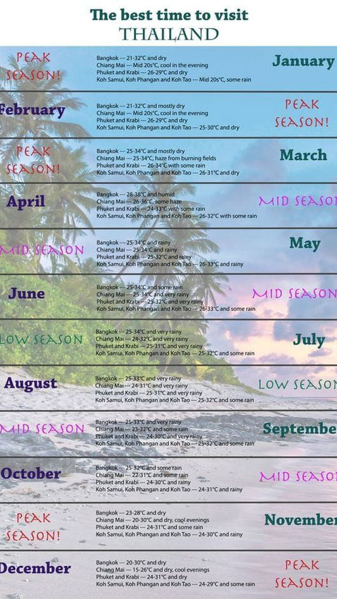 The hot season runs from March through to June, with April and May the hottest months of the year. Monsoon season in Phuket normally runs from June thru October and November is a little rain shower. The cool season is start from December to February and will still feel hot to most visitors. Anyhow, the weather in Phuket is sometimes unstable.